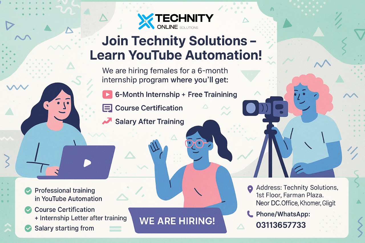 We are hiring females for a 6-month internship program where you’ll get: 6-Month Internship + Free Trainining Course Certification Salary […]